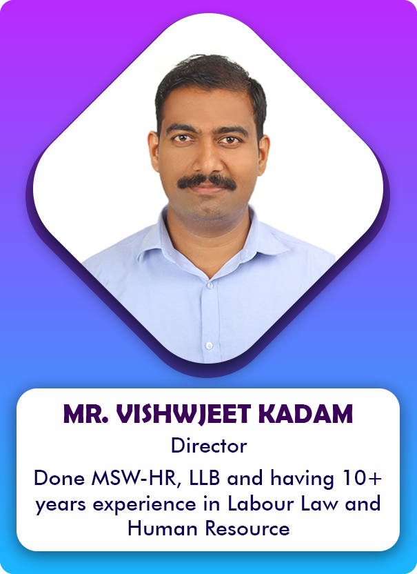 I comes with over ten years of experiences in Labour laws, Human resource functions. I do have sound experience of implementing, communicating and maintaining a corporate HR compliance program that designed to identify statutes risk, ensure adherence with all HR related to legal or regulatory and compliance requirements. Has done MSW in Human resource from Y.C. school of social work, Satara and LLB from New law college, Pune.